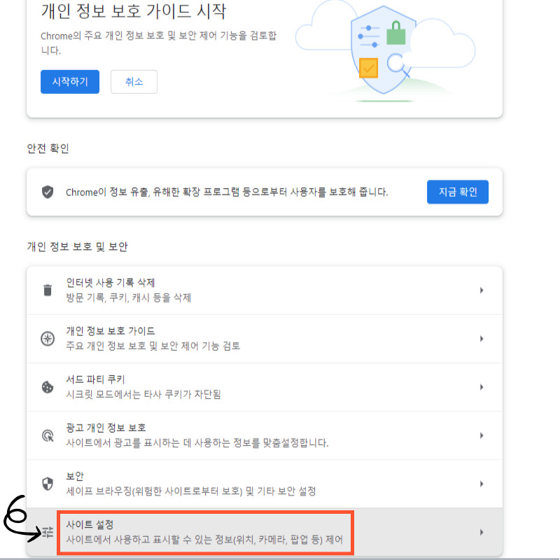 3. 하단에 있는 '사이트 설정'을 클릭해 주세요